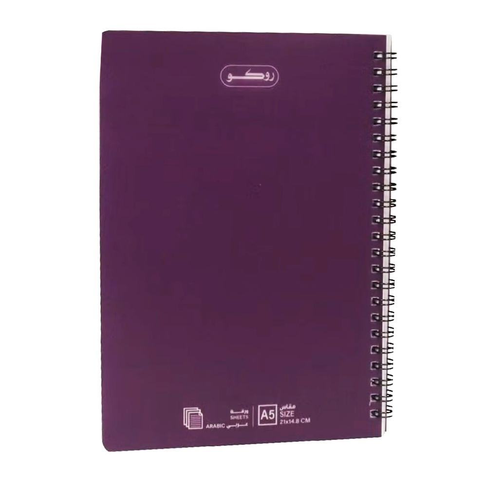 دفتر سلك مسطر 100 ورقة A5غلاف بلاستيك مقوى بتصميم داخلي بسيط مسطرمقاس دفتر : A5 -mm145×208عدد الأوراق : 100 ورقة