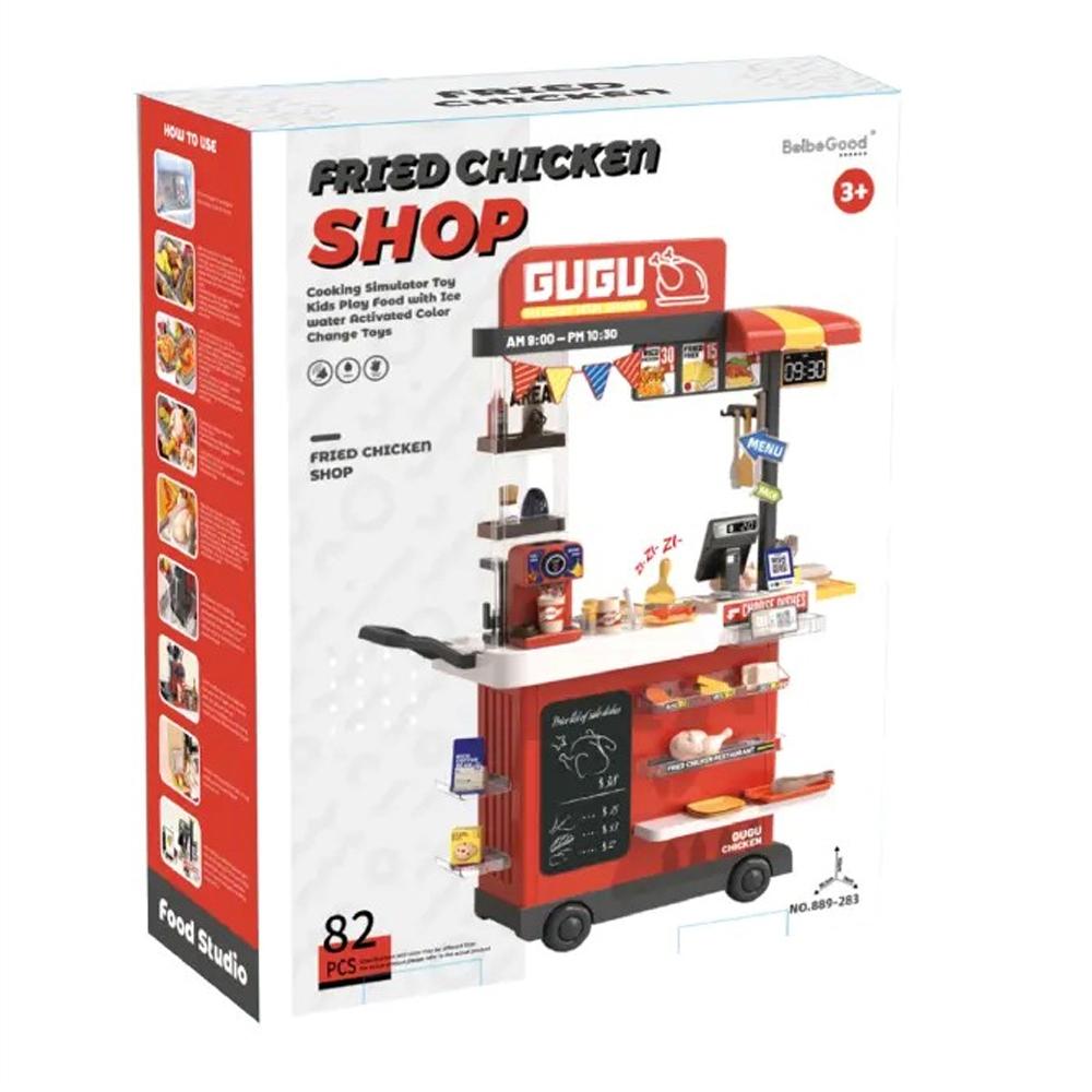 - عربة متنقلة: اللعبة مزودة بعربة عرض صغيرة يمكن للأطفال استخدامها لعرض الدجاج المقلي بطريقة جذابة.