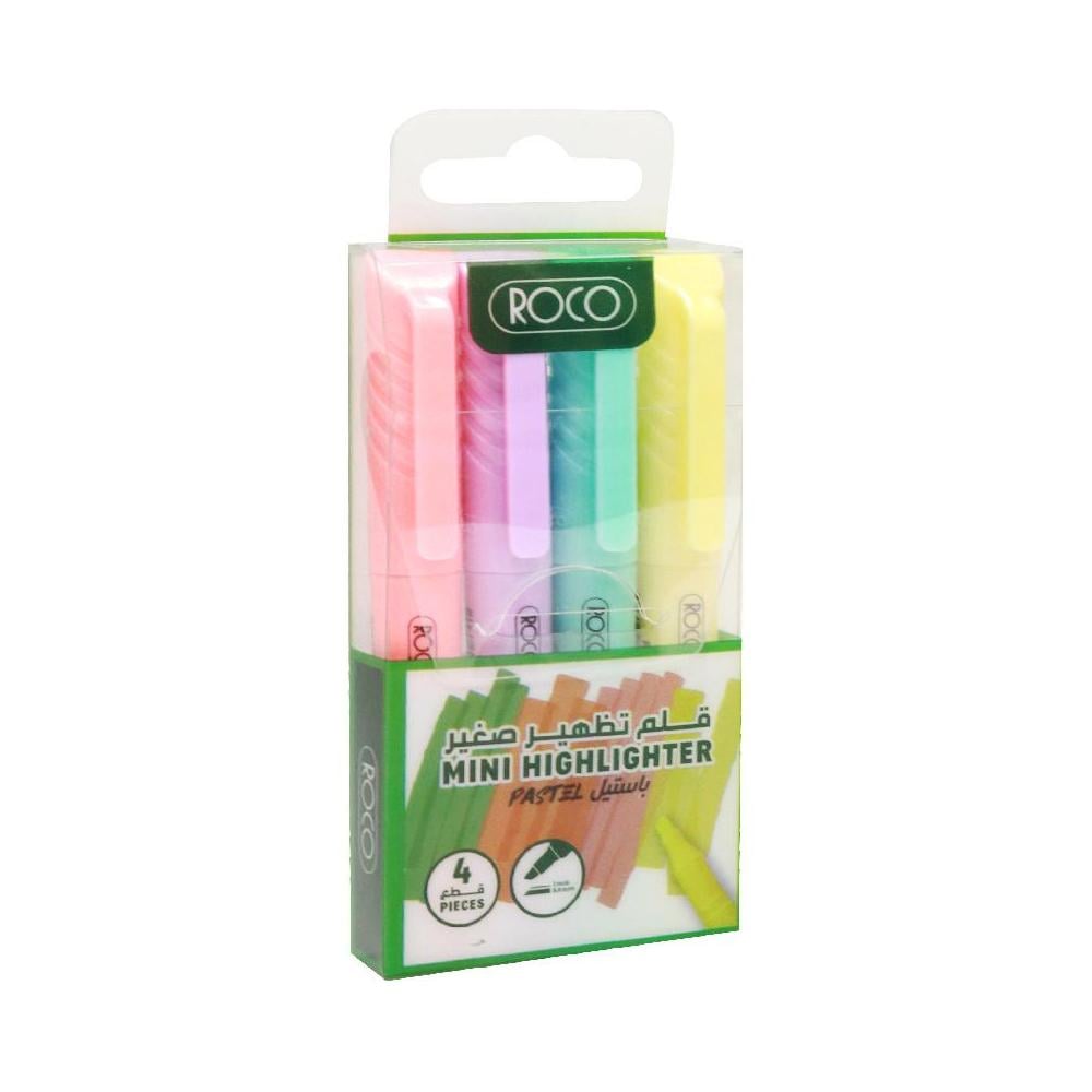 أقلام تظهير صغير (هايلايتر) باستيل 4 لون - ROCO
